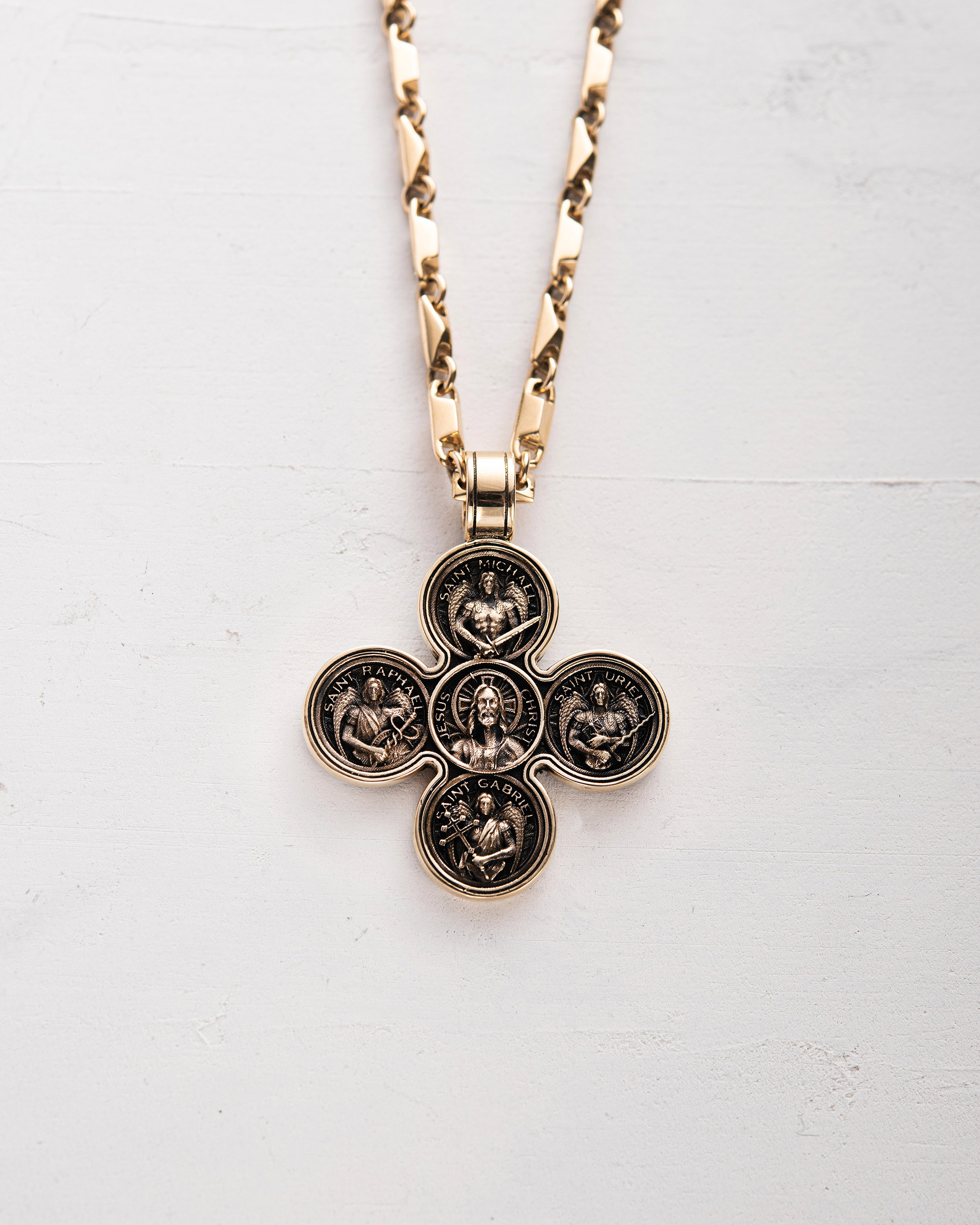 Krzyż JESUS ​​AND THE FOUR ARCHANGELS (żółte złoto) 3861