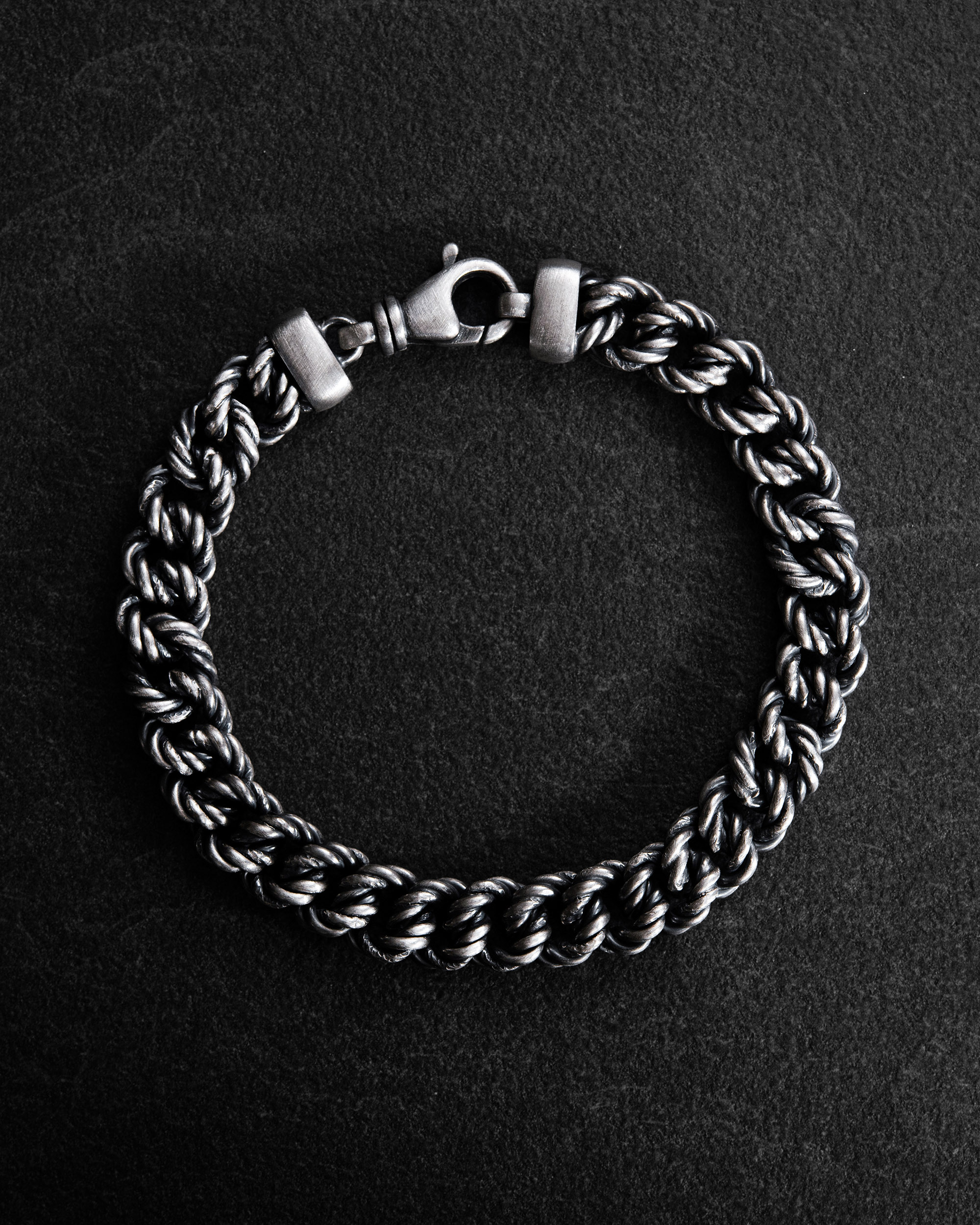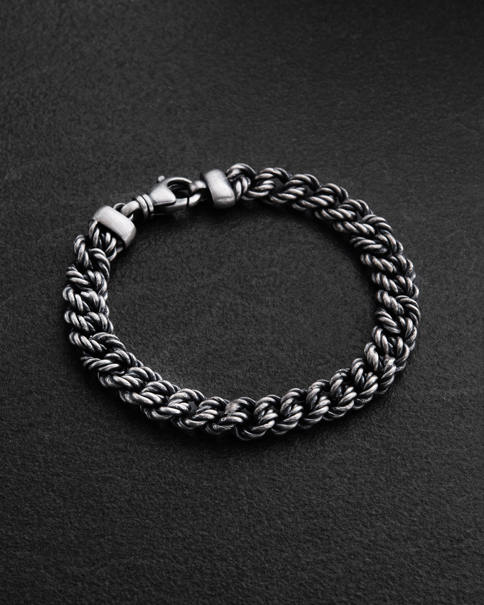 Srebrna bransoleta DAPPER wyróżnia się wyrazistą fakturą oraz poczuciem siły w każdym detalu. Nazwa DAPPER pochodzi z języka niderlandzkiego i oznacza „odważny” lub „śmiały”. Symbolika ta odzwierciedla determinację, wewnętrzną siłę oraz gotowość do działania niezależnie od okoliczności. Biżuteria przypomina o człowieku, który nie boi się wyzwań i podąża własną drogą. Wyraża pewność siebie i zdolność zachowania odporności w trudnych momentach. To bransoleta dla mężczyzn, którzy cenią odwagę, siłę ducha oraz niezależność w swoich decyzjach.