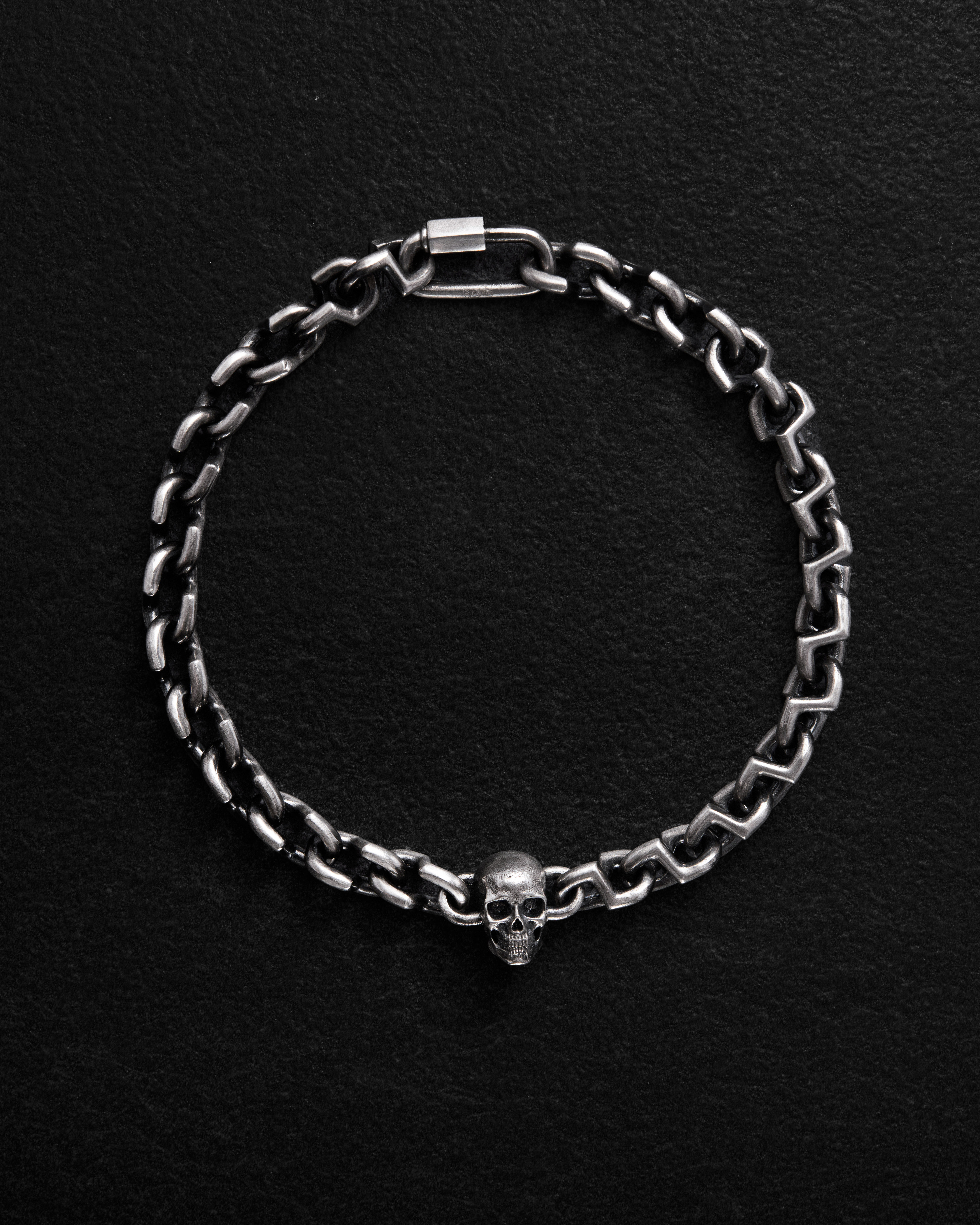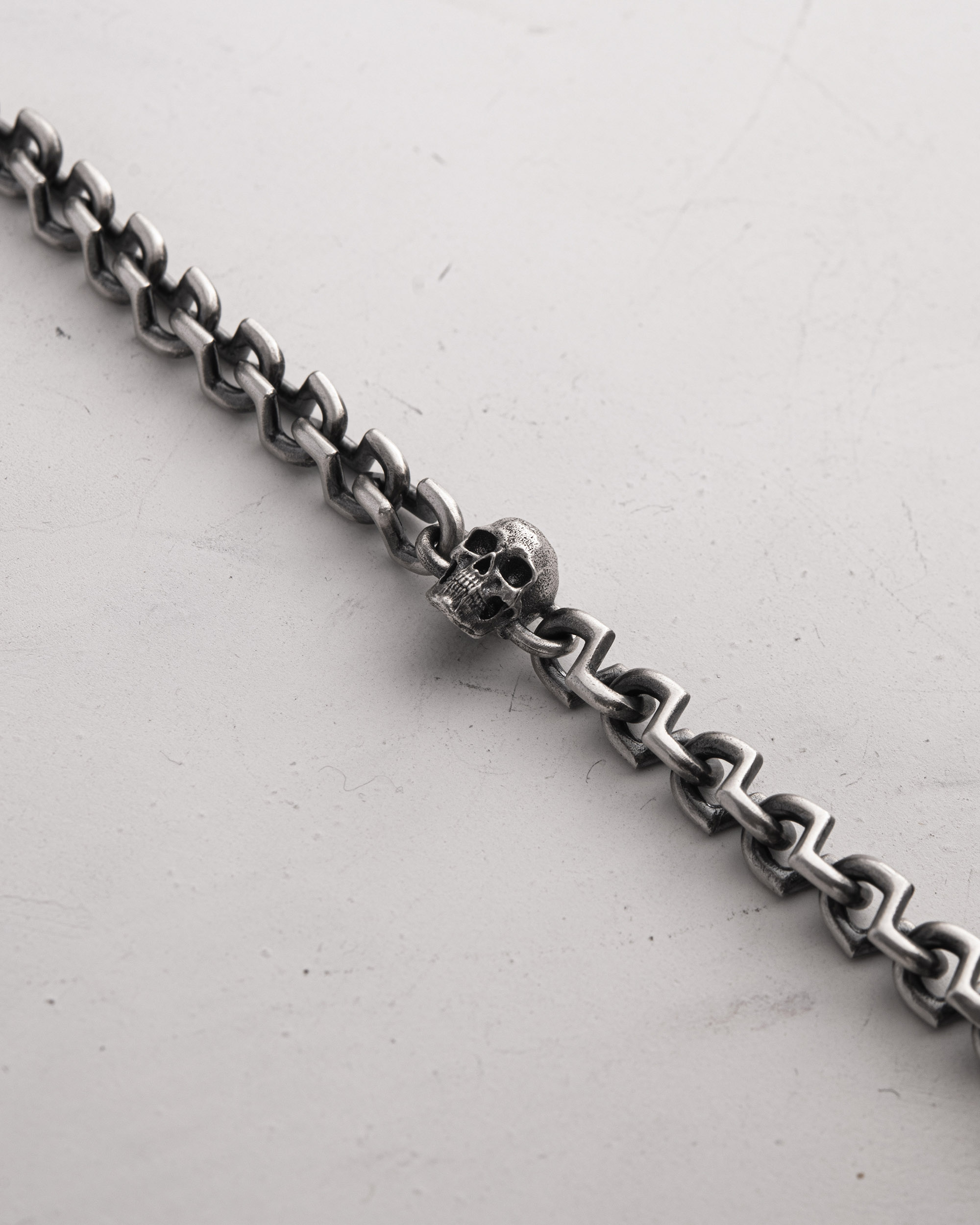 Srebrna bransoleta SKULL to symbol świadomości, siły ducha i akceptacji życia w całej jego pełni. Czaszka w centrum kompozycji to nie tylko znak śmierci, ale także przypomnienie o wartości każdej chwili — że czas jest najcenniejszym zasobem, którego nie można odzyskać. Bransoleta SKULL uosabia odwagę bycia sobą, podążania własną drogą bez strachu i złudzeń. Przypomina: życie jest krótkie — żyj pełnie, godnie i świadomie.