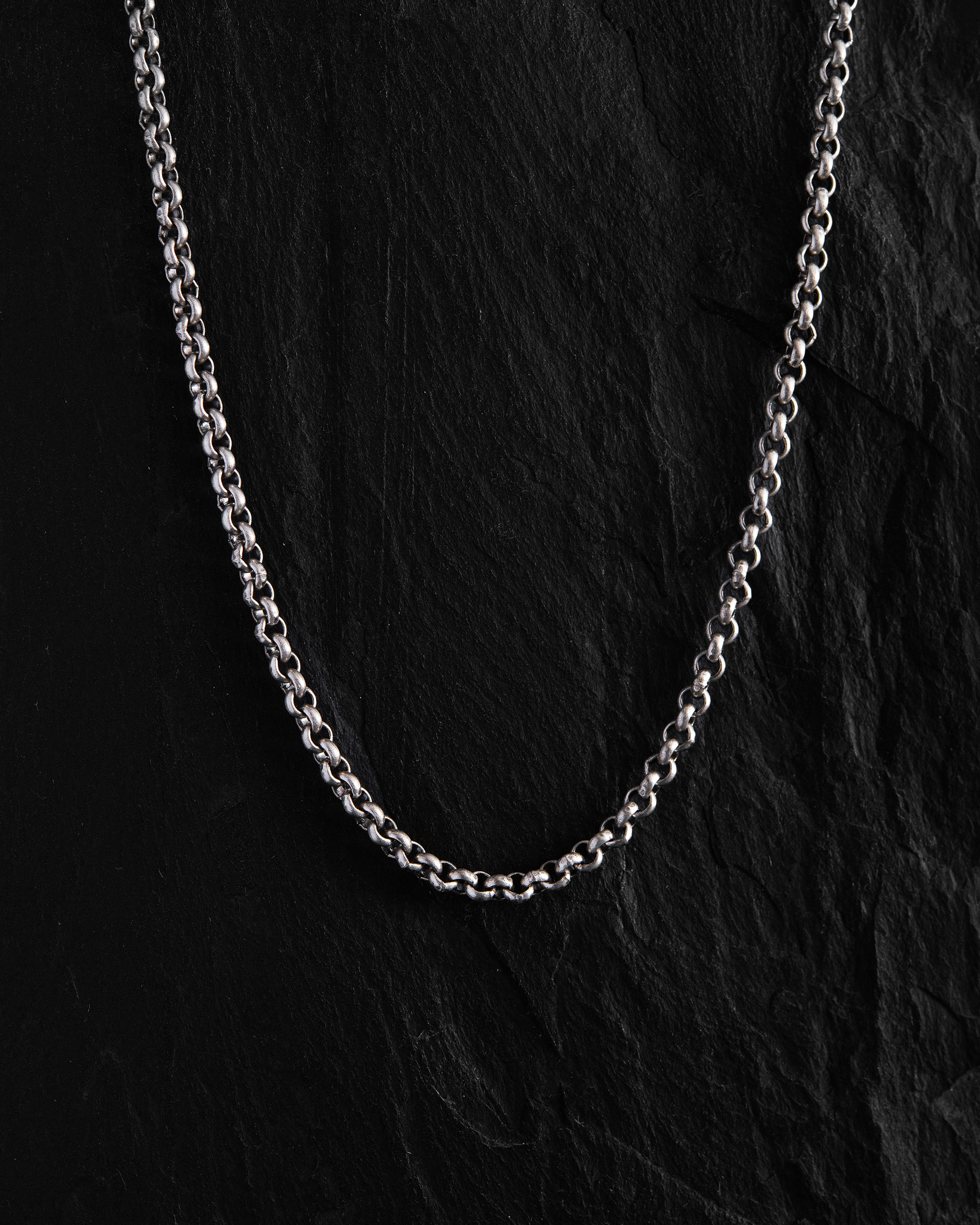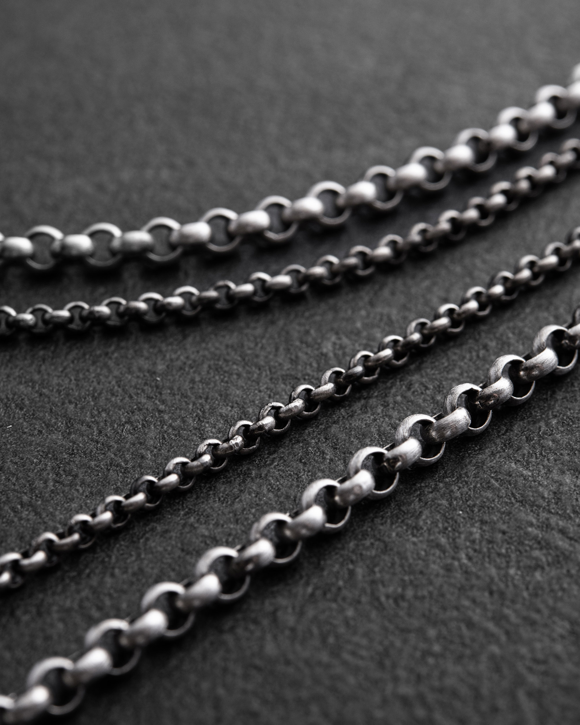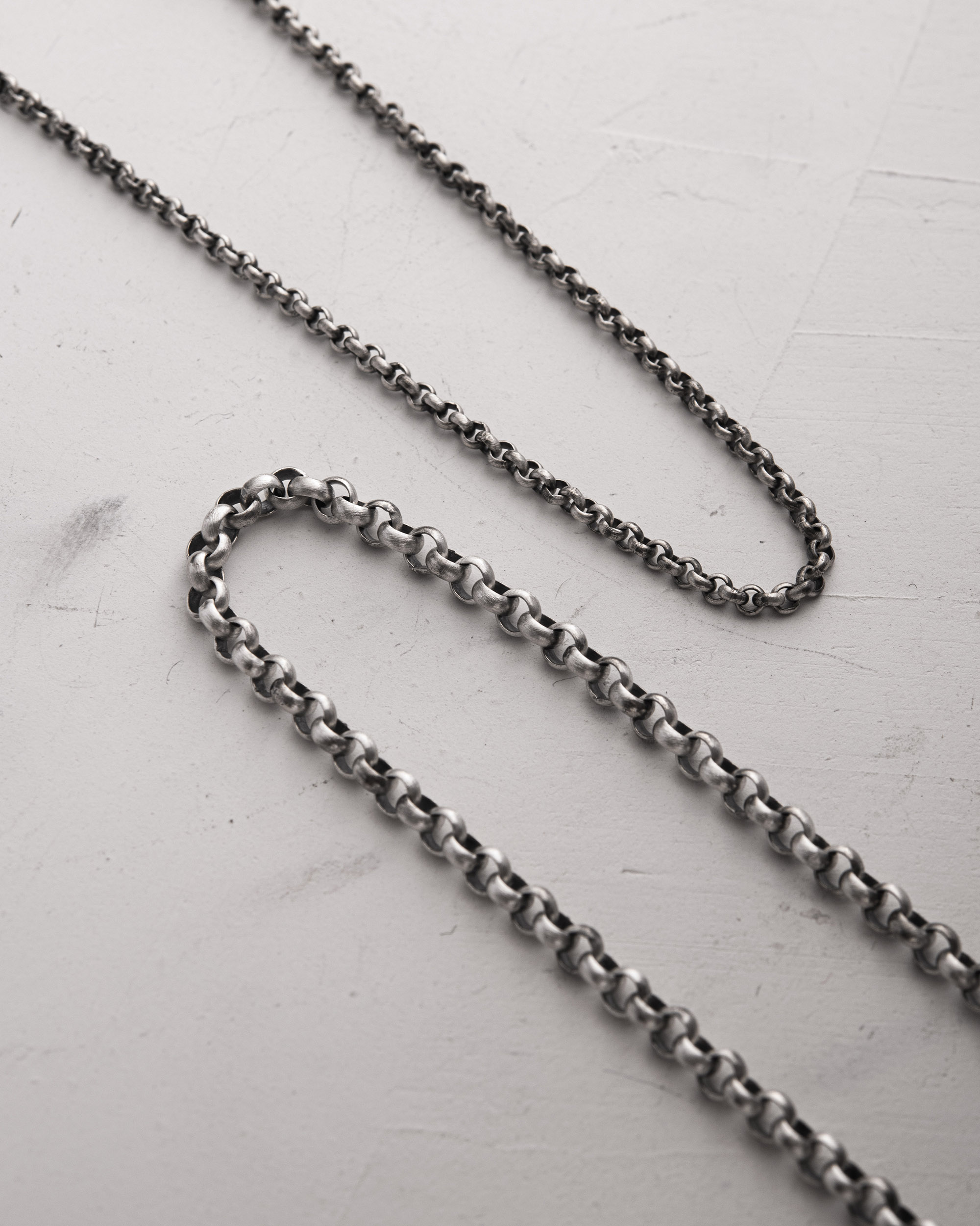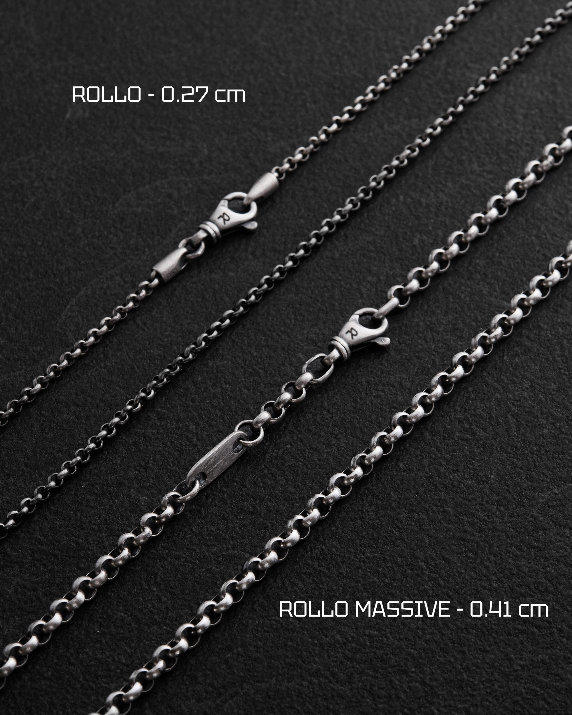 Srebrny łańcuszek o splocie ROLLO wyróżnia się okrągłymi, równomiernie połączonymi ogniwami, które nadają mu wrażenie równowagi i solidności. To uniwersalny i prosty splot, idealny do noszenia bez zawieszki lub w zestawie z nią.