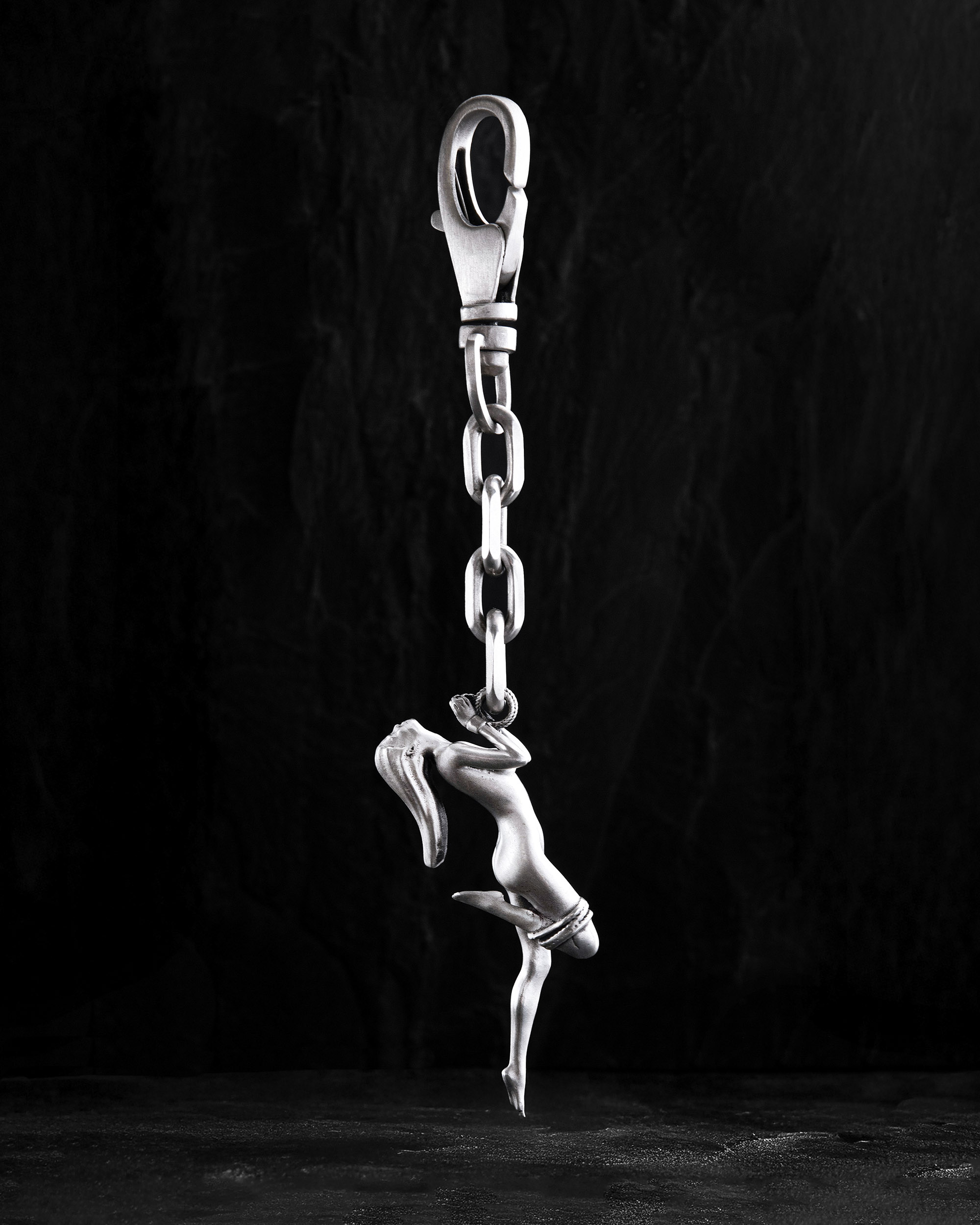 SHIBARI — srebrny brelok inspirowany japońską sztuką wiązania, w której zaufanie, kontrola i zmysłowa interakcja tworzą wyjątkową przestrzeń dla dwojga. Ten motyw odzwierciedla nie tylko równowagę siły i wrażliwości, lecz także otwartość uczuć między partnerami, gdy każdy ruch staje się językiem zrozumiałym tylko dla nich. SHIBARI przypomina o odwadze bycia sobą obok kogoś, kto akceptuje i czuje równie głęboko. To symbol pary, która buduje więź na wzajemności, otwartości i subtelnej harmonii dwóch energii. Brelok SHIBARI jest dla tych, którzy widzą w bliskości nie tylko namiętność, lecz także duchową jedność.