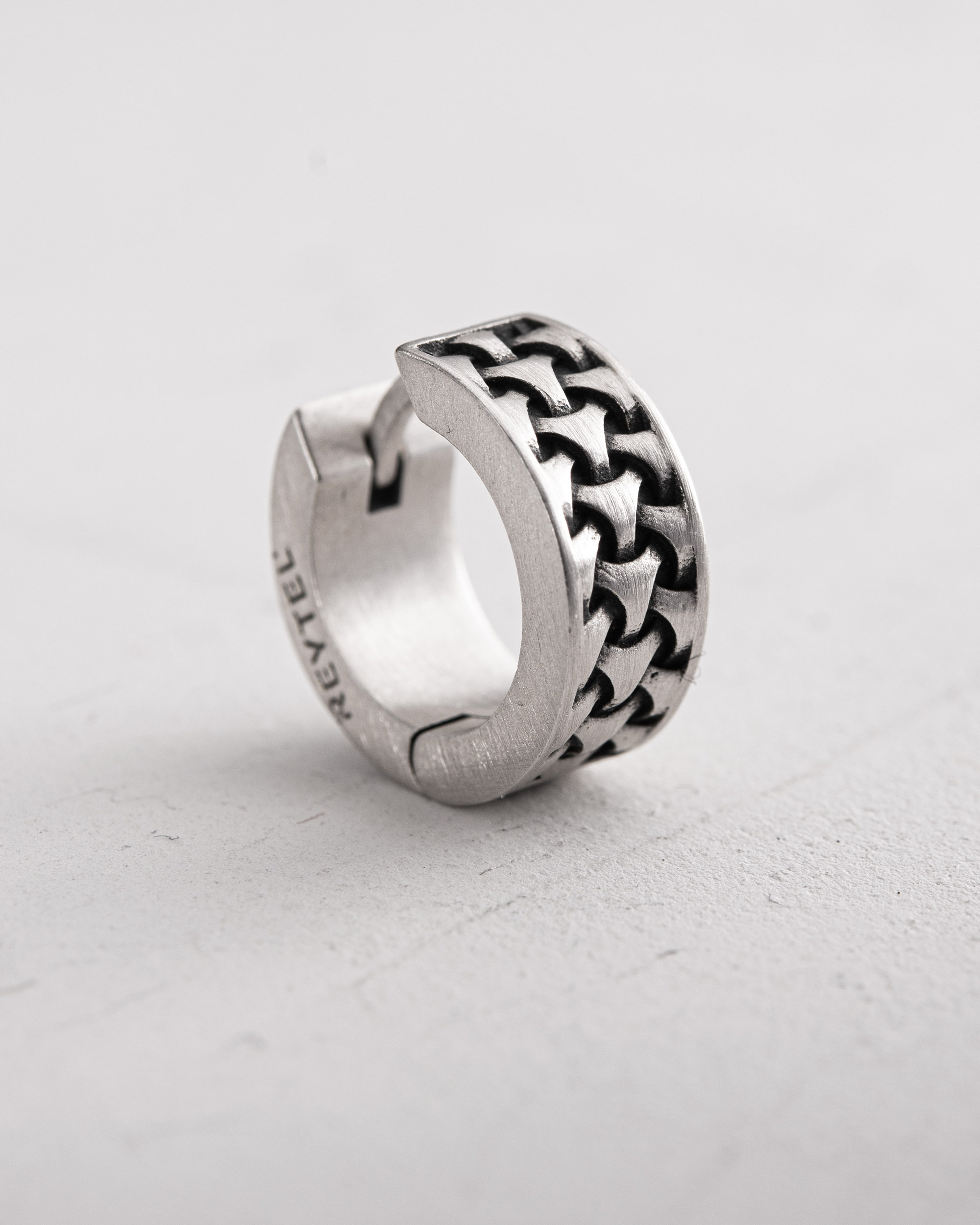 Srebrny kolczyk-koło DEJAVU — nazwa pochodzi z języka francuskiego déjà vu, co oznacza „już widziane”. Symbolizuje ideę powtarzalności, pamięci i więzi z przeszłością, kiedy znajome doświadczenie pojawia się w nowym kontekście. Geometryczny wzór na powierzchni kolczyka przypomina o cyklicznej naturze wydarzeń i nieustannym upływie czasu, gdzie wspomnienia splatają się z nowymi wyborami. To biżuteria dla tych, którzy cenią swoją historię i potrafią dostrzec sens w każdym powtórzeniu. DEJAVU to przypomnienie, że przeszłość i teraźniejszość są zawsze ze sobą powiązane, a doświadczenie czyni nas silniejszymi i mądrzejszymi.