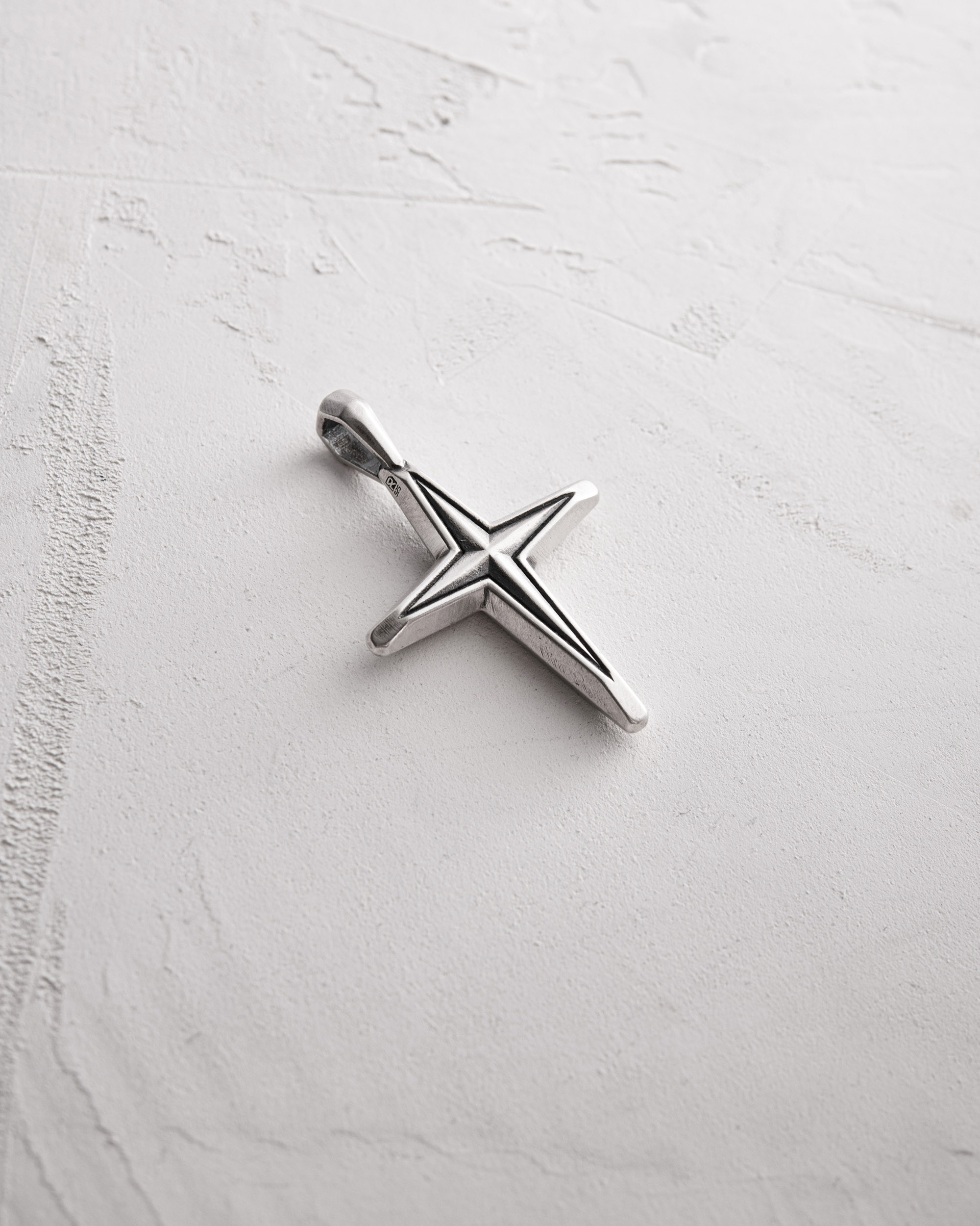 CHEMIN (Droga) — srebrny krzyż w nowoczesnej, geometrycznej formie, gdzie wyraźne linie i kierunkowe kształty nadają wrażenie ruchu naprzód. Nazwa Chemin, co po francusku oznacza „drogę”, odzwierciedla ideę osobistej ścieżki, na której wiara staje się przewodnikiem i wewnętrznym kompasem. Projekt zawieszki symbolizuje kierunek, rozwój duchowy i siłę, która pomaga pozostać wiernym sobie mimo przeciwności. CHEMIN to biżuteria dla tych, którzy odnajdują w wierze inspirację, a w krzyżu — znak własnego celu i wewnętrznej wytrwałości.