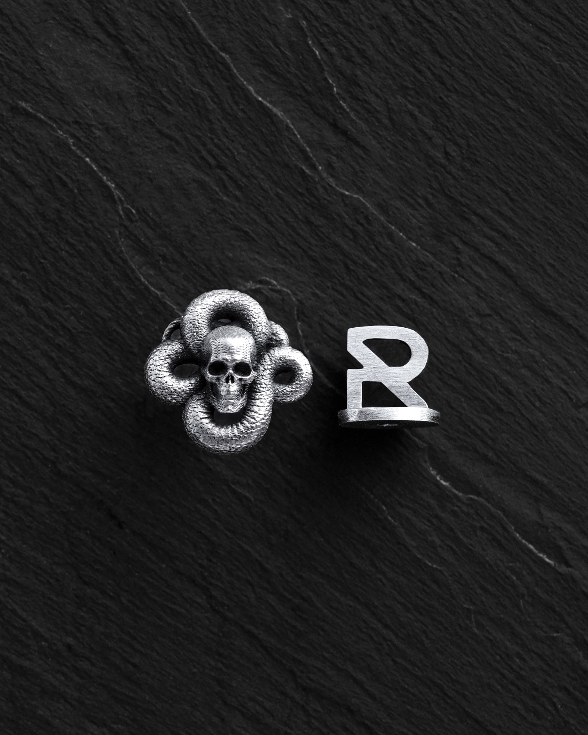 MORTE SERPENS (Wąż Śmierci) — srebrny kolczyk typu mono, w którym splatają się dwa potężne archetypy: wąż jako symbol mądrości i odnowy oraz czaszka jako przypomnienie o nieuchronności i sile przemiany. Razem uosabiają akceptację własnego cienia, umiejętność stawienia czoła lękowi i wychodzenia z prób silniejszym. Ta biżuteria mówi o wewnętrznej determinacji, świadomości i odwadze do zmiany. MORTE SERPENS to wybór dla tych, którzy widzą w symbolach nie mrok, lecz głębię, i noszą je jako znak osobistej siły i transformacji.
