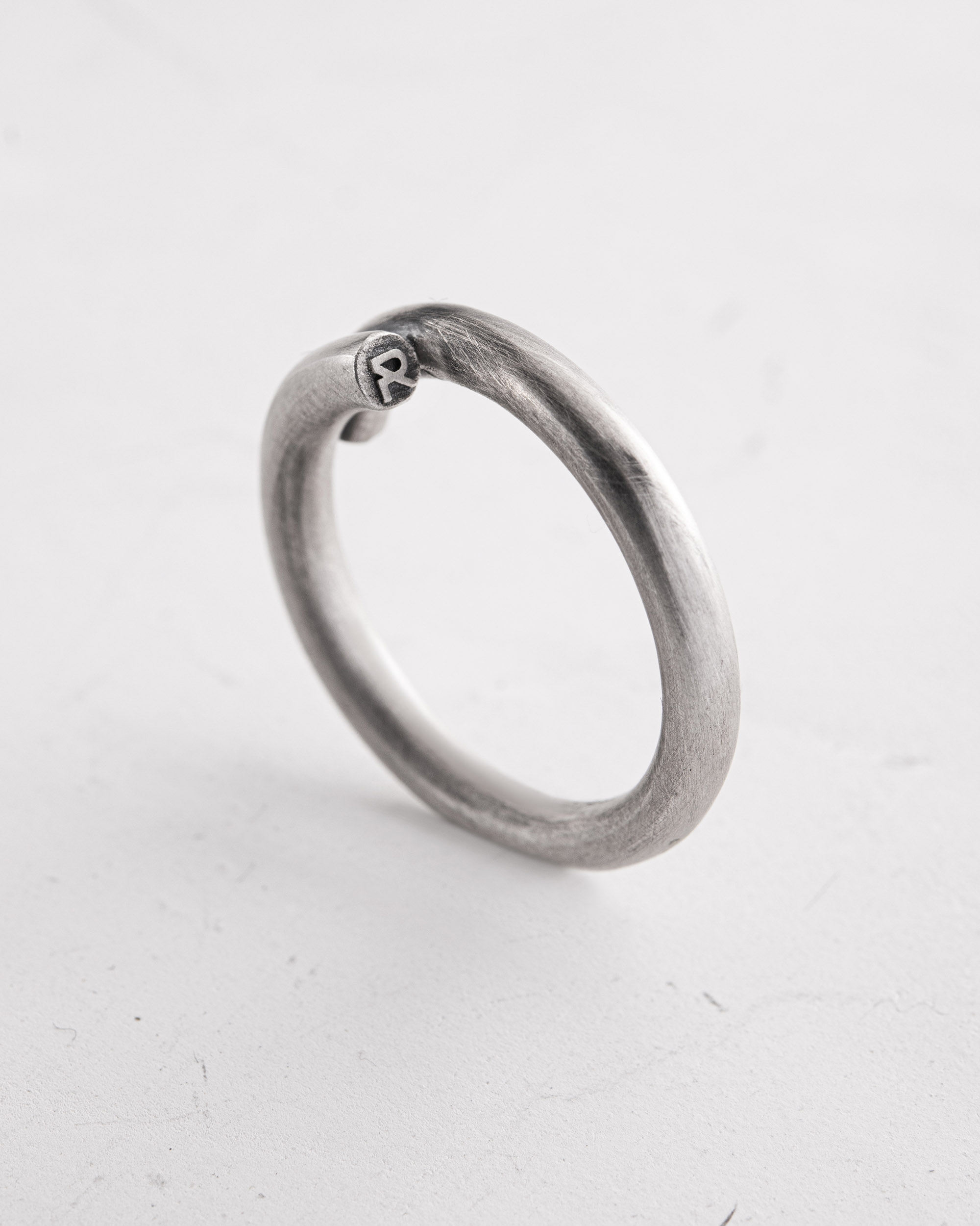 Jego forma — otwarty pierścień — to symbol wyboru i ruchu naprzód, gdy sam wyznaczasz swoją drogę. Prostota designu podkreśla sedno: prawdziwa siła tkwi nie w wyglądzie, lecz w umiejętności podejmowania decyzji bez oglądania się wstecz.