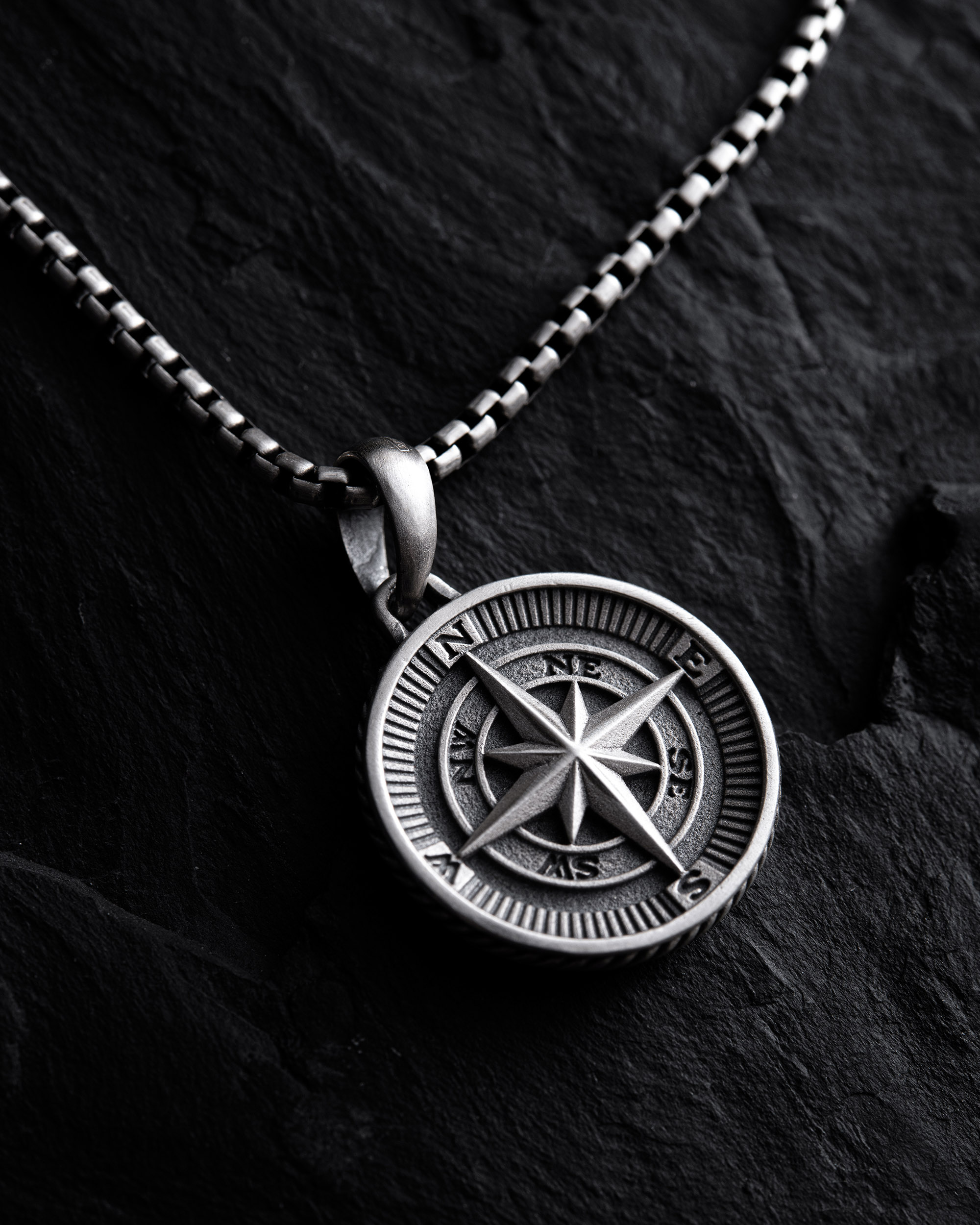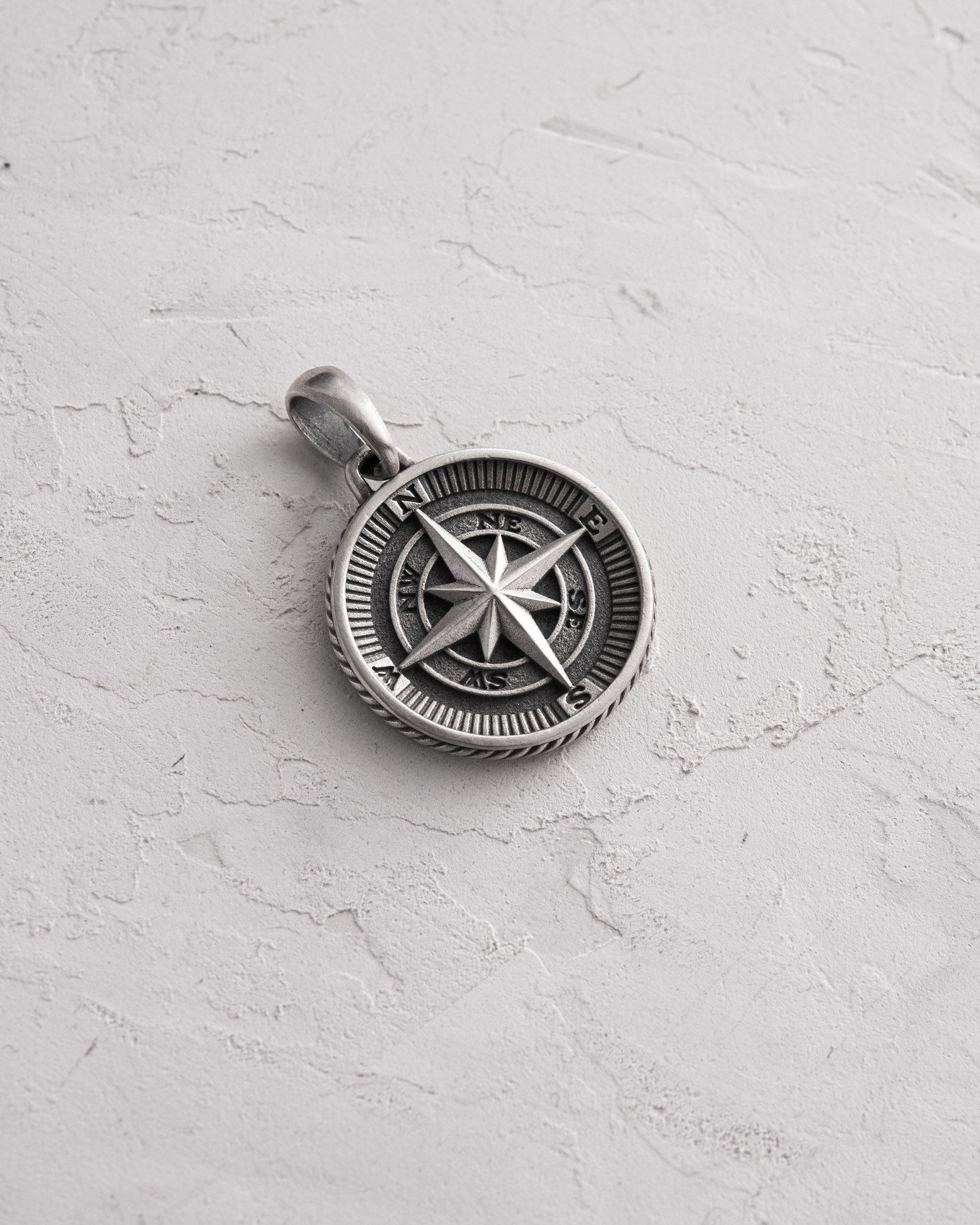 Srebrny wisiorek "COMPASS. POLAR STAR" jest symbolem nawigacji i obfitej statyczności w życiu. Ta ozdoba łączy w sobie obraz kompasu, który wskazuje kierunek, oraz Gwiazdy Polarnej, która zawsze pozostaje niezmiennym punktem na nocnym niebie, służąc jako niezawodny wskaźnik dla podróżników.