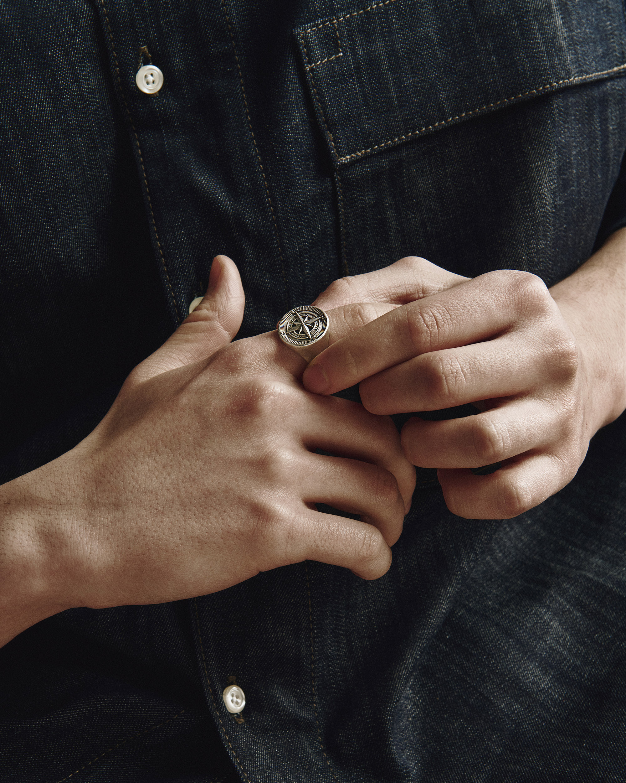 Srebrny pierścień "COMPASS. POLAR STAR" to wskaźnik pokazujący kierunek, pomagający w orientacji i dodaje niezawodność. Ta biżuteria przedstawia obraz kompasu i Gwiazdy Polarnej — są to narzędzia nawigacyjne, które od dawna były używane do wyznaczania drogi. Kompas to ciągłe poszukiwanie właściwej drogi i życiowego kursu, a Gwiazda Polarna, zawsze wskazuje północ, symbolizuje niezawodność i niezłomność. Noszenie tego pierścienia ma znaczenie pozostania wiernym swoim celom i zasadom, niezależnie od okoliczności.