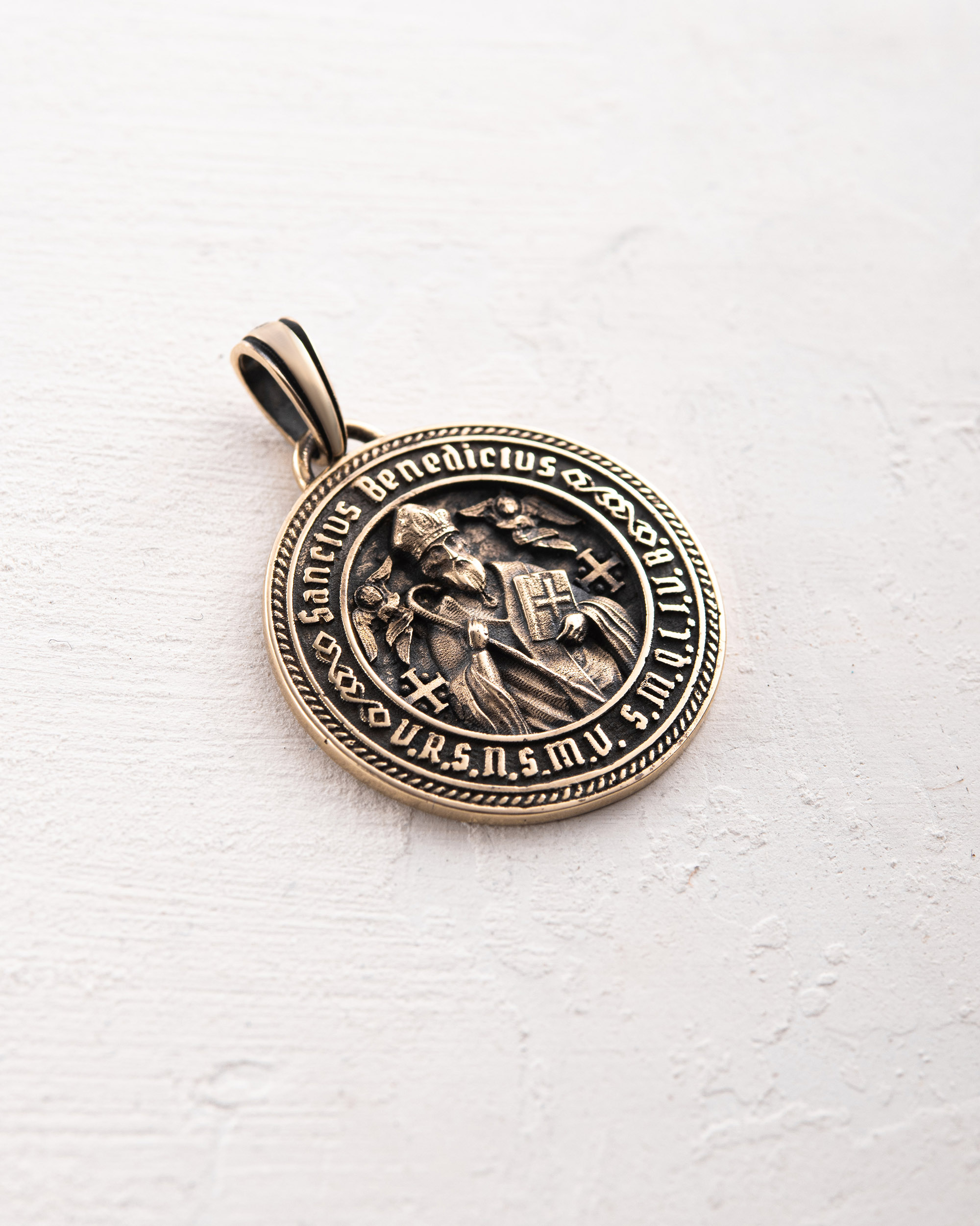 Wisiorek SANCTUS BENEDICTUS (żółte złoto) 3924