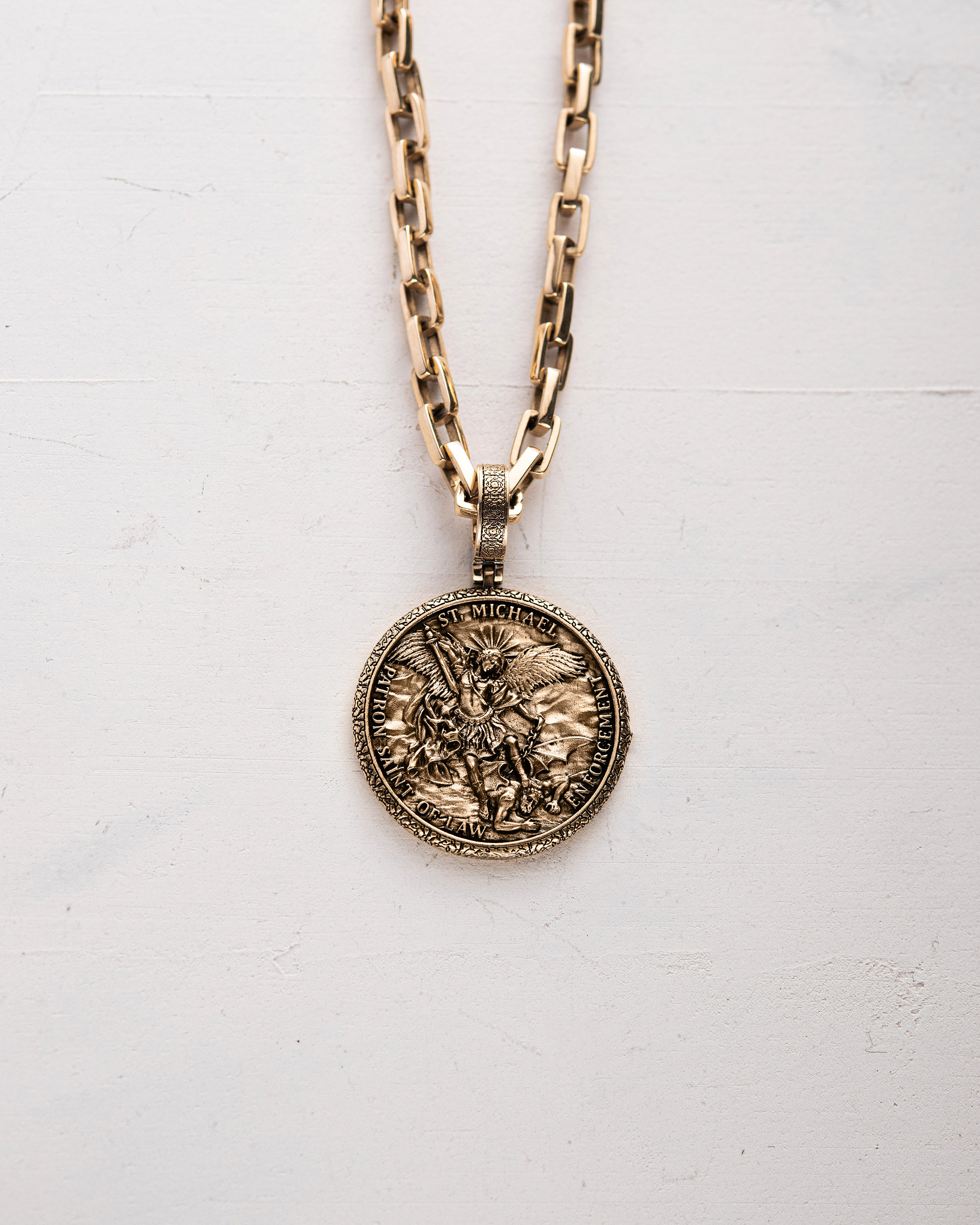Wisiorek ŚW. ARCHANIOŁ MICHAŁ: MODLITWA (żółte złoto) 3881